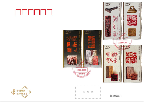 4月20日,中国邮政发行2026年《中国篆刻(三)》特种邮票1套4枚,邮票图案名称为:敬身六面印·丁敬、江流有声断岸千尺·邓石如、二金蝶堂·赵之谦、十六金符斋·黄士陵。